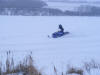 A nice old back road separating a couple of frozen water bodies.