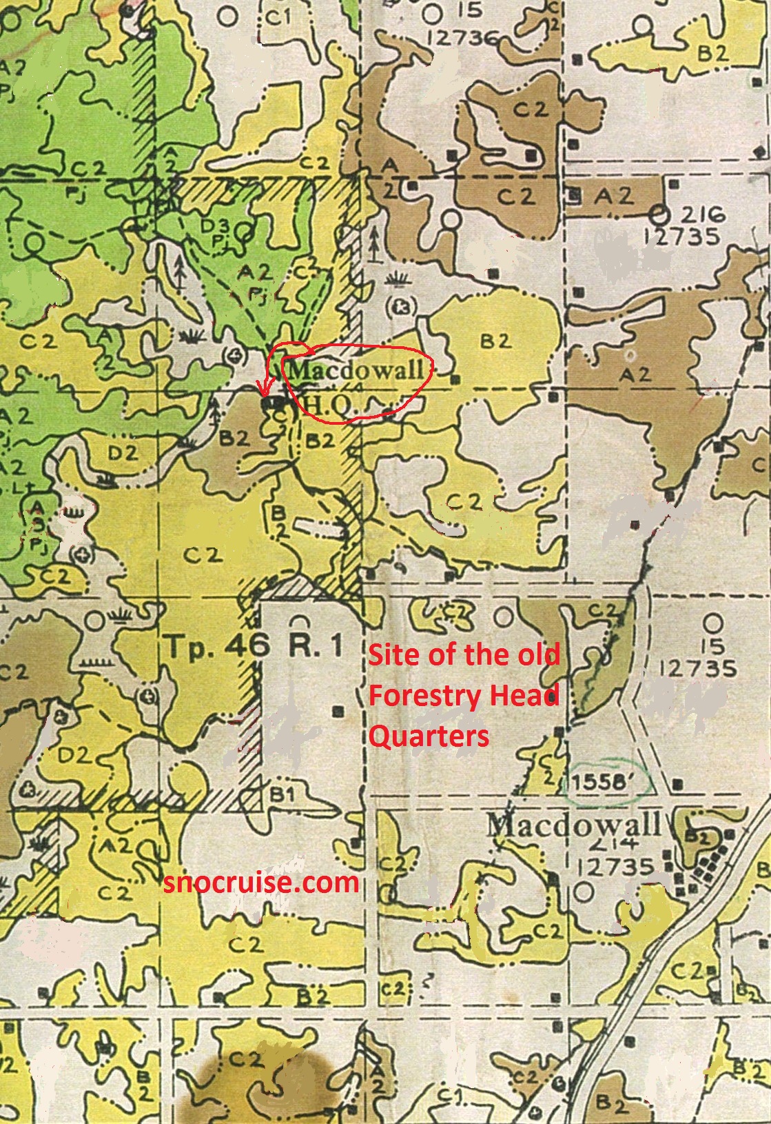 The Nisbet Forest Macdowall Division Forestry headquarters, 1953. Other Nisbet Forest Maps.