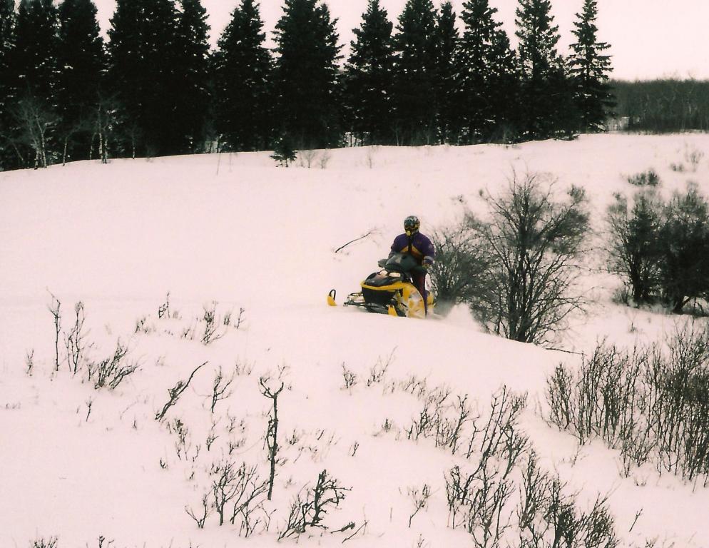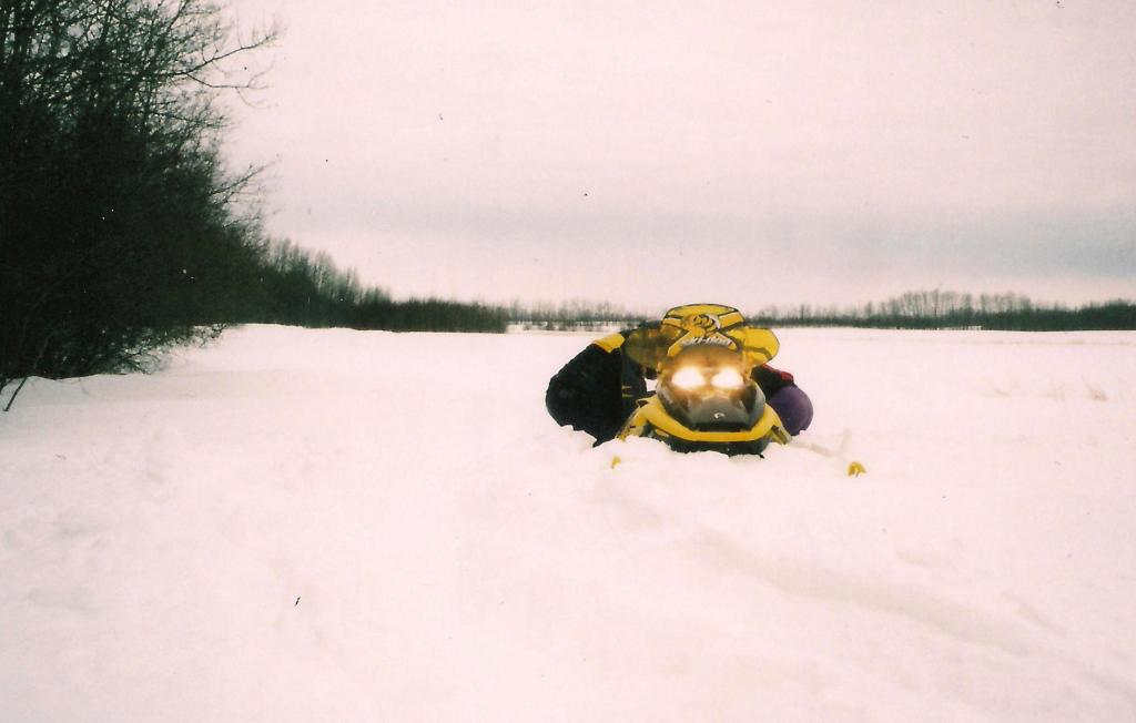 AM: We ride up towards the Scott Lakes The snow is fresh, deep and new snow banks are being created by the minute, in the forest we are sheltered from the wind, but out of the trees the wind is just howling. Stuck along a field! Stuck on the Boundary Trail!