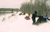 PM: We hook up with another group. Who were Trailering to Emma, but thought they would check out the snow across to Shellbrook with us. A few miles out of Macdowall, right on Boundary Trail where the Nisbet borders the rolling county side we drive straight into blow through snow banks so deep, bottomless and scalloped.........that once everyone got unstuck......a second or third time.........and we finally got turned around......we choose a different route for a couple of miles!
