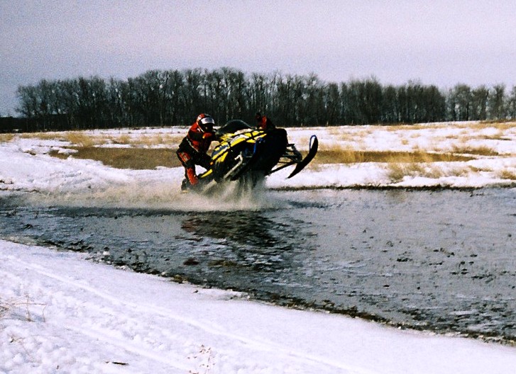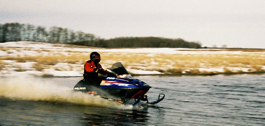 least an 700cc sled and hit the gas real hard going into the water! |